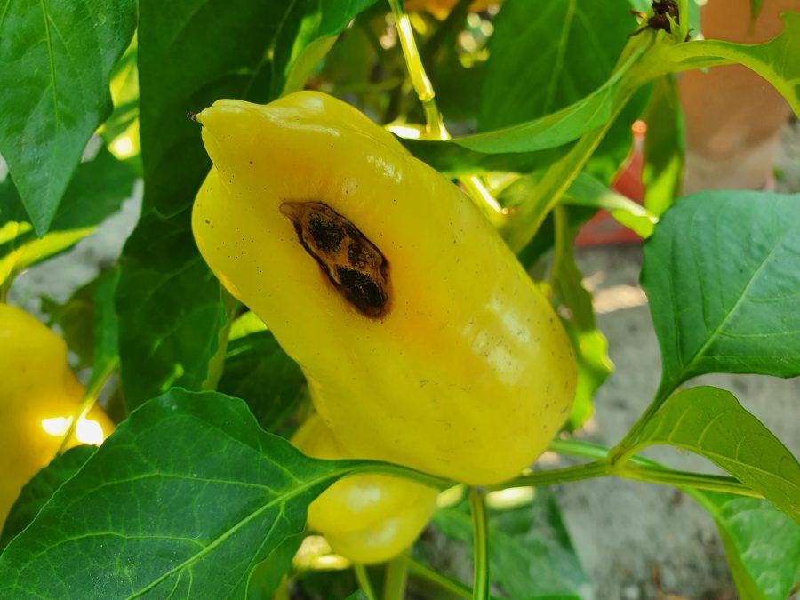Je mimoriadne teplo a to je presne obdobie kedy sa najčastejšie prejavuje nedostatok vápnika vo výžive rastlín. Na fotografiách nižšie je pár príkladov. Začína to ako nenápadná suchá škvrna na plodoch. Na paradajkách je to tmavé suché miesto zo spodnej strany. Na paprikách sa objavuje stenšená stena plodu, najčastejšie na boku. Cukiny a tekvičky zase majú zúžený, mäkký koniec plodu.