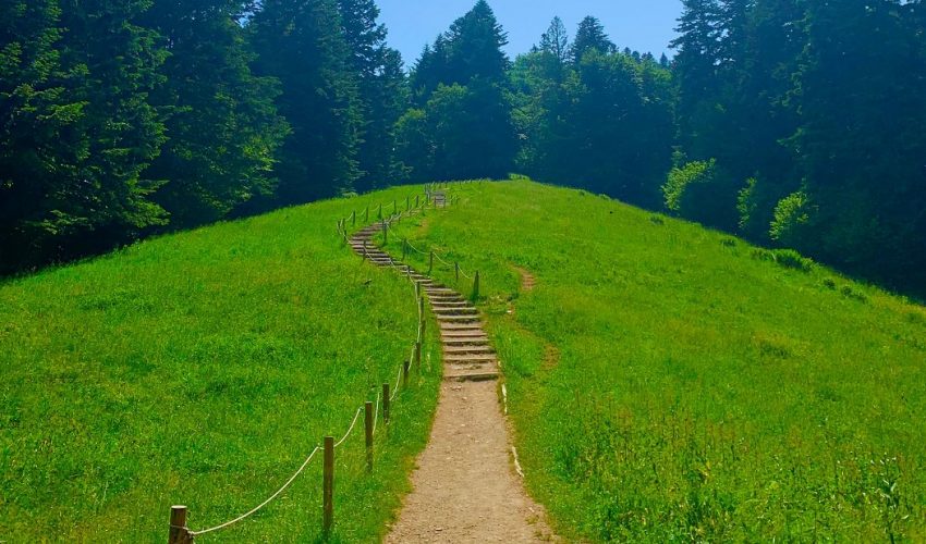Ďalšími schodmi, kamennými zabezpečenými reťazami, ale aj drevenými, aj cez lúku, až sme sa dostali na Pieninský hrad.