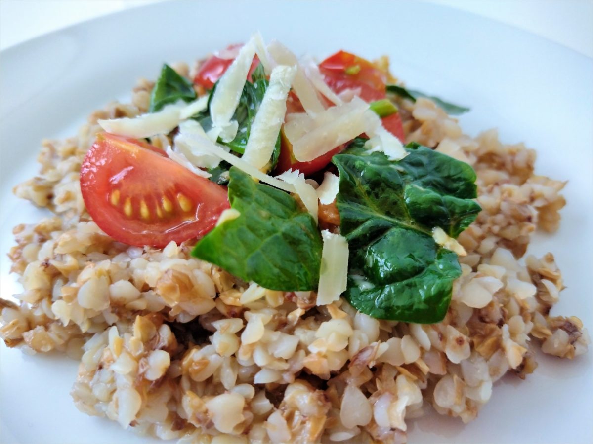 Pohánka s baby špenátom a rajčinami. Rýchle a zdravé jedlo, ktoré oceníte aj ako prílohu k mäsu